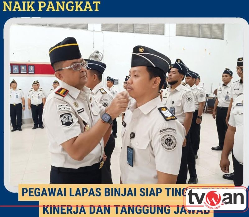 TVWAN.ID, BINJAI | – Kepala Lembaga Pemasyarakatan (Lapas) Kelas IIA Binjai, Wawan Irawan, memimpin upacara kenaikan pangkat bagi 26 pegawai di lingkungan Lapas Binjai, Selasa (14/4/2026).