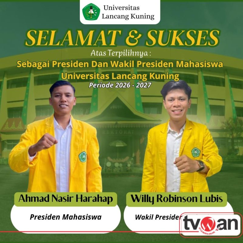 Tvwan.Id | Pekanbaru,-Ahmad Nasir Harahap dan Willy Robinson Lubis secara Resmi Terpilih sebagai Presiden dan Wakil Presiden Mahasiswa Universitas Lancang Kuning untuk periode kepengurusan terbaru taun 2026-2027.