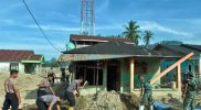 Selain melakukan pengecekan awal dan koordinasi dengan pemerintah desa serta masyarakat, personel Brimob juga terlibat langsung dalam proses perbaikan melalui kegiatan gotong royong bersama warga.