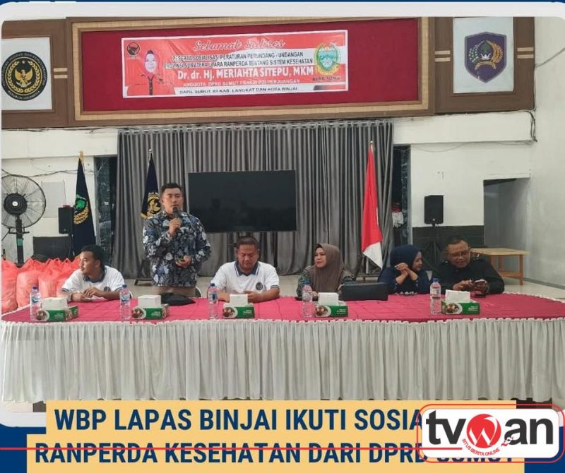 TVWAN.ID, BINJAI | – Upaya pemerataan akses kesehatan terus diperluas hingga ke lingkungan pemasyarakatan. Lembaga Pemasyarakatan (Lapas) Kelas IIA Binjai menggelar sosialisasi Peraturan Perundang-undangan Provinsi Sumatera Utara terkait Rancangan Peraturan Daerah (Ranperda) tentang Kesehatan, Sabtu (7/3/2026).