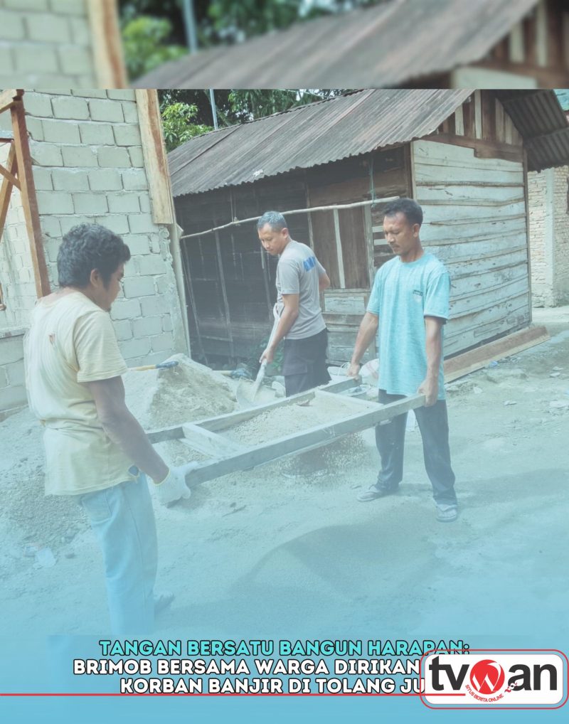 TVWAN.ID, TAPANULI SELATAN | — Kepedulian terhadap warga terdampak bencana kembali ditunjukkan oleh Sat Brimob Polda Sumut melalui keterlibatan langsung dalam pembangunan rumah hunian tetap swadaya masyarakat di Desa Tolang Julu, Kecamatan Sayur Matinggi, Kabupaten Tapanuli Selatan, Jumat (20/2/2026).