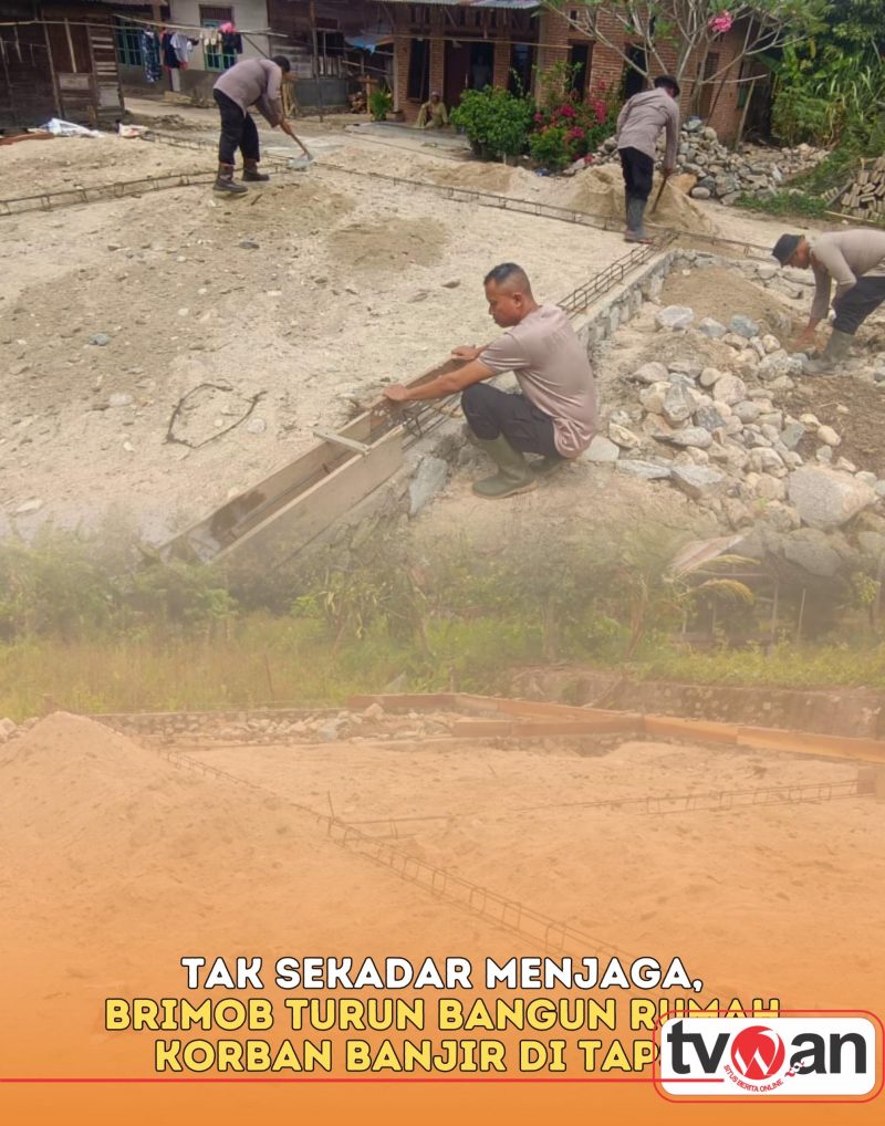 TVWAN.ID, TAPANULI SELATAN | – Personel Batalyon C Satuan Brimob Polda Sumatera Utara (Sumut) turut serta dalam pembangunan rumah swadaya bagi korban banjir di Desa Tolang Julu, Kecamatan Sayur Matinggi, Kabupaten Tapanuli Selatan, Rabu (4/2/2026).