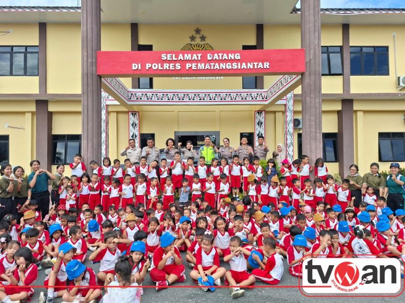 TVWAN.ID, PEMATANGSIANTAR | – Satuan Lalu Lintas Polres Pematangsiantar menerima kunjungan edukatif dari 180 siswa Taman Kanak-Kanak (TK) Cinta Rakyat di Markas Komando Polres Pematangsiantar, Jalan Sudirman, Kecamatan Siantar Barat, Jumat (20/2) sekitar pukul 09.00 WIB.
