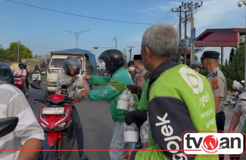 Kegiatan yang berlangsung pada pukul 17.00 hingga 17.30 WIB tersebut membagikan sebanyak 200 paket takjil kepada pengguna jalan, termasuk pengemudi ojek daring yang melintas di kawasan tersebut.