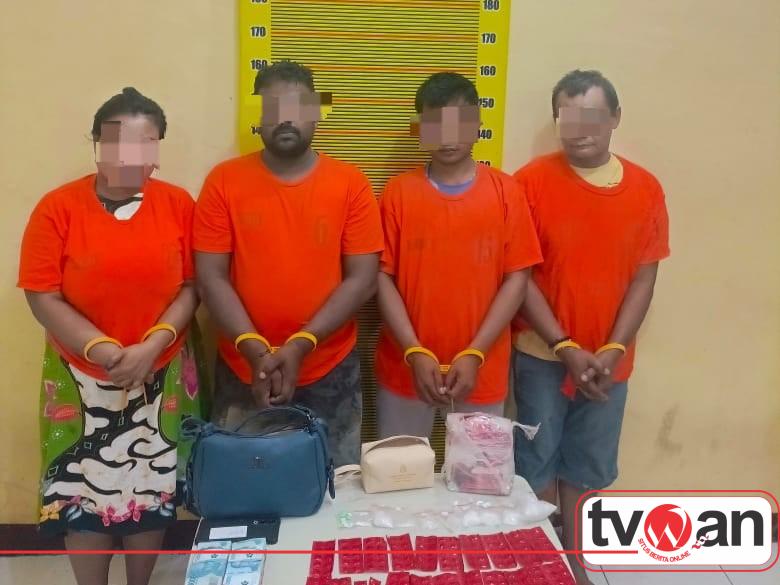 Dalam pengungkapan tersebut, petugas mengamankan empat orang pelaku yang diduga terlibat dalam jaringan peredaran narkoba, masing-masing berinisial SN (54), K (34), V (37), dan B (32).