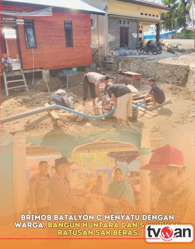 TVWAN.ID, TAPANULI SELATAN | – Personel Batalyon C Satuan Brimob Polda Sumatera Utara kembali menunjukkan kepedulian sosial melalui serangkaian kegiatan kemanusiaan yang dilaksanakan di Kecamatan Batang Toru, Kabupaten Tapanuli Selatan, pada Selasa (10/2/2026). Kegiatan tersebut menyasar langsung kebutuhan masyarakat pascabencana, mulai dari pembangunan hunian sementara, perbaikan fasilitas ibadah, hingga penyaluran bantuan pangan.