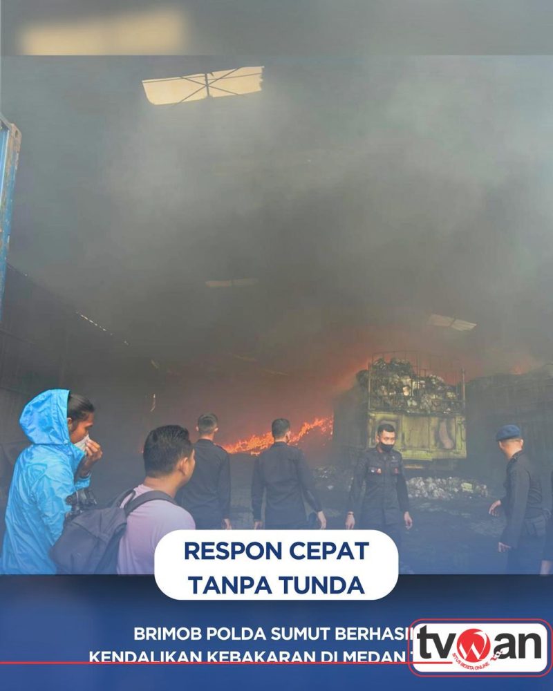 TVWAN.ID, MEDAN | – Gerak cepat dan respons tanggap kembali ditunjukkan oleh Personel Satuan Brimob Polda Sumatera Utara dalam menghadapi situasi darurat kebakaran yang terjadi di area pengangkutan MT Trans, yang berlokasi di Jl. Jati No.53, Kelurahan Pulo Brayan Bengkel, Kecamatan Medan Timur, Kota Medan.