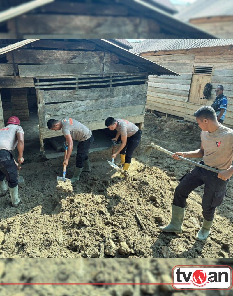 TVWAN .ID, TAPANULI SELATAN |  – Sebagai wujud nyata kepedulian dan pengabdian kepada masyarakat, personel Batalyon C Satuan Brimob Polda Sumatera Utara melaksanakan kerja bakti kemanusiaan pascabencana tanah longsor dan banjir bandang di wilayah Kecamatan Batang Toru, Kabupaten Tapanuli Selatan, Senin (26/01/2025).