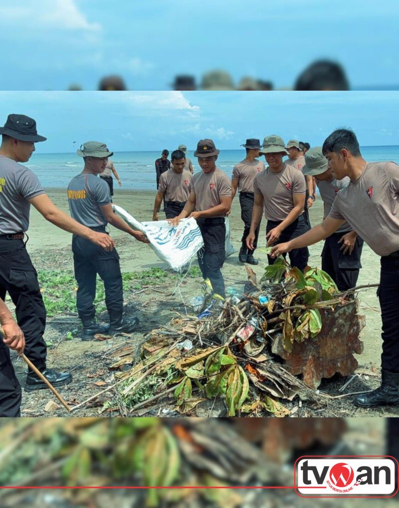 TVWAN.ID, GUNUNGSITOLI | – Personel Kompi 4 Batalyon C Satuan Brimob Polda Sumatera Utara melaksanakan pembersihan sampah di kawasan pantai sekitar Taman Kota Gunungsitoli, Selasa (3/2/2026). Kegiatan ini bertujuan mendukung pelestarian ekosistem pesisir dan menjaga kebersihan ruang publik.
