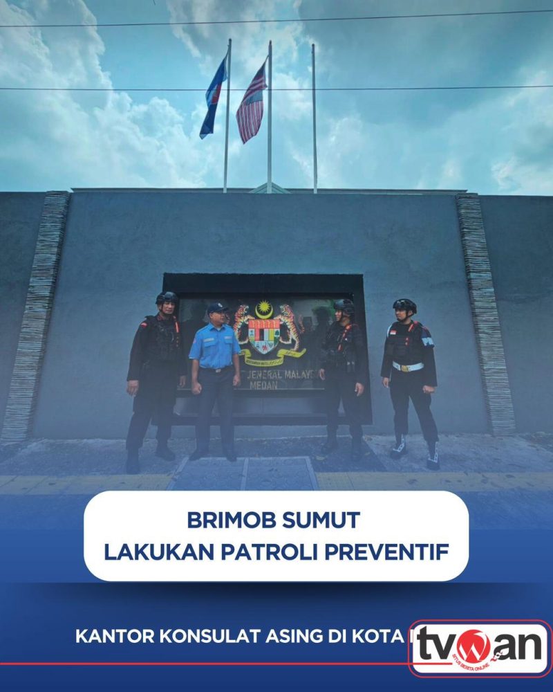 MEDAN, TVWAN.ID – Personel Den 45 Anti Anarkis Detasemen Gegana Satuan Brimob Polda Sumatera Utara melaksanakan kegiatan patroli pengamanan di sejumlah kantor perwakilan konsulat negara sahabat di Kota Medan, Selasa (10/3/2026). Kegiatan ini dilakukan sebagai langkah preventif untuk menjaga stabilitas keamanan serta memastikan situasi tetap kondusif di sekitar objek diplomatik.