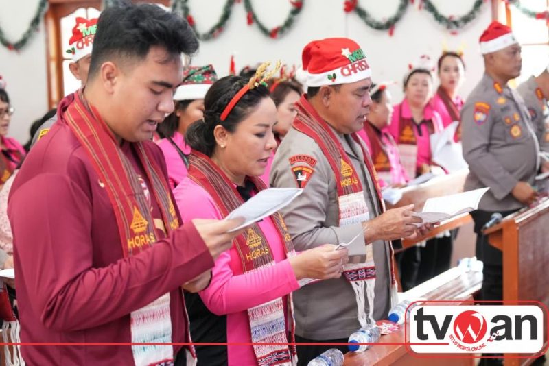 Ibadah Natal berlangsung dalam suasana penuh kehangatan, diisi dengan puji-pujian, persembahan dari Polwan, serta momen penyalaan lilin Natal yang sarat makna sebagai simbol terang dan harapan di tengah kegelapan.