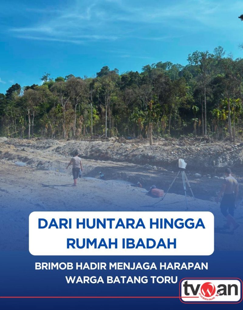 TVWAN.ID, TAPANULI SELATAN |  — Personel Brimob Batalyon C melaksanakan rangkaian kegiatan pengamanan dan kemanusiaan di wilayah Kecamatan Batang Toru, Kabupaten Tapanuli Selatan, Minggu (1/3/2026). Kegiatan ini difokuskan pada pengawasan pembangunan hunian sementara (huntara), pengamanan aktivitas masyarakat, serta pemantauan normalisasi sungai sebagai bagian dari upaya pemulihan pascabencana.