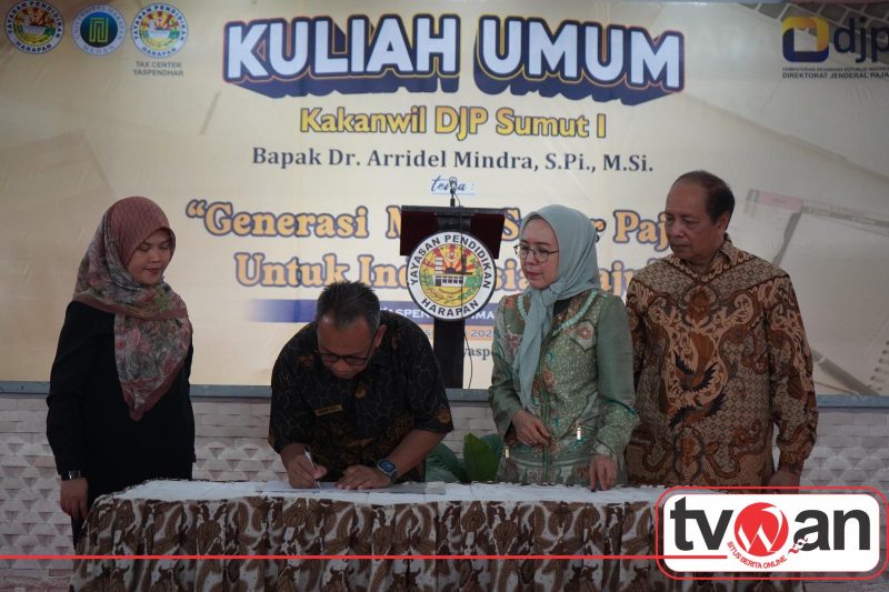 TVWAN.ID, MEDAN | – Kantor Wilayah Direktorat Jenderal Pajak (DJP) Sumatera Utara I bersama Yayasan Pendidikan Harapan (Yaspendhar) meresmikan Tax Center di lingkungan kampus Universitas Harapan Medan pada Selasa, 9 Desember 2025. Peresmian ini bertujuan memperkuat sinergi edukasi perpajakan dan ditandai dengan target aktivasi akun Coretax bagi 650 pegawai Yaspendhar.