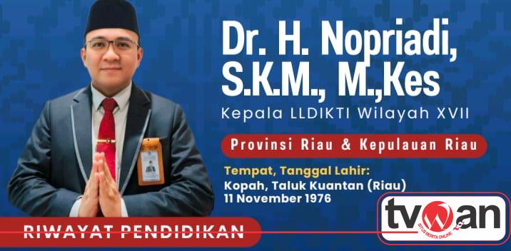 Tvwan.Id | Pekanbaru,-6 Februari 2026 – Dr. H. Nopriadi, SKM, M.Kes, Kepala LLDIKTI Wilayah XVII, dianggap cocok menjadi Rektor Universitas Riau (UR) kedepan. Beliau memiliki pengalaman luas di bidang pendidikan tinggi dan kepemimpinan.