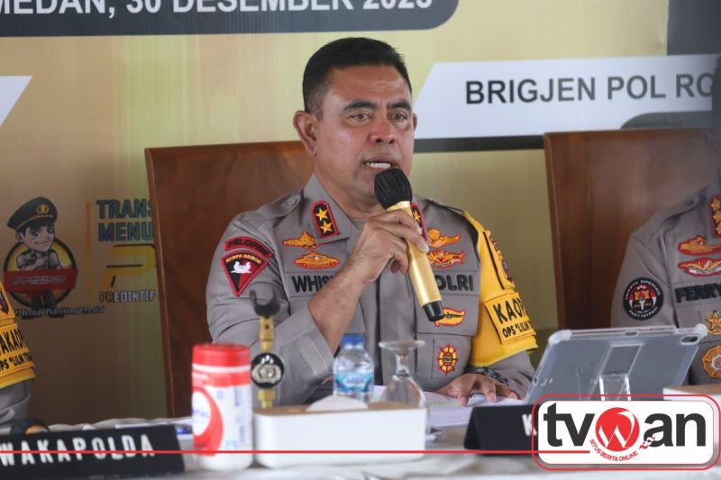TVWAN.ID, MEDAN | – Kepolisian Daerah Sumatera Utara (Polda Sumut) menggelar refleksi akhir tahun 2025 secara sederhana di Mapolda Sumut, Selasa (30/12/2025). Kegiatan tahunan tersebut berlangsung tanpa kemeriahan, sebagai bentuk empati terhadap masyarakat yang masih terdampak bencana alam di sejumlah wilayah Sumatera Utara.