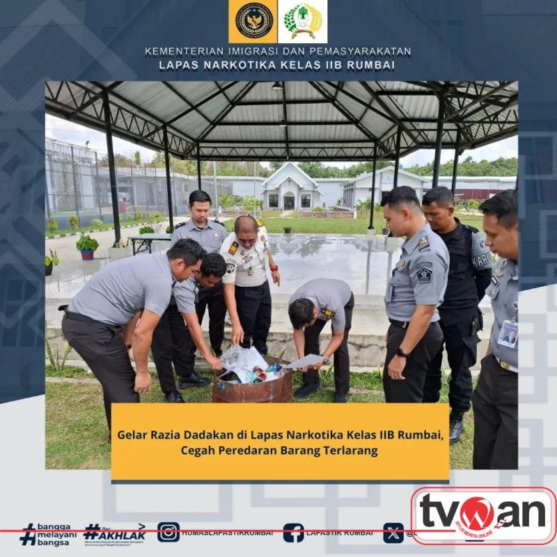 Tvwan.Id | Pekanbaru,– Petugas Lapas Narkotika menggelar razia mendadak di sejumlah blok hunian warga binaan pada Rabu (03/12). Razia dilakukan sebagai langkah rutin untuk memastikan keamanan dan mencegah peredaran barang terlarang di lingkungan lembaga pemasyarakatan.