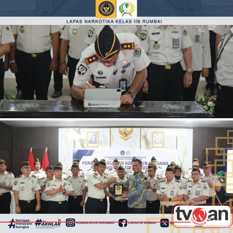 Penandatanganan komitmen bersama tersebut ditandatangani oleh Kepala Kantor Wilayah Direktorat Jenderal Pemasyarakatan Riau, Maizar, serta diikuti oleh seluruh Kepala UPT Pemasyarakatan se-Riau, sebagai simbol komitmen bersama dalam mendukung pembangunan Zona Integritas menuju Wilayah Bebas dari Korupsi (WBK) dan Wilayah Birokrasi Bersih dan Melayani (WBBM).