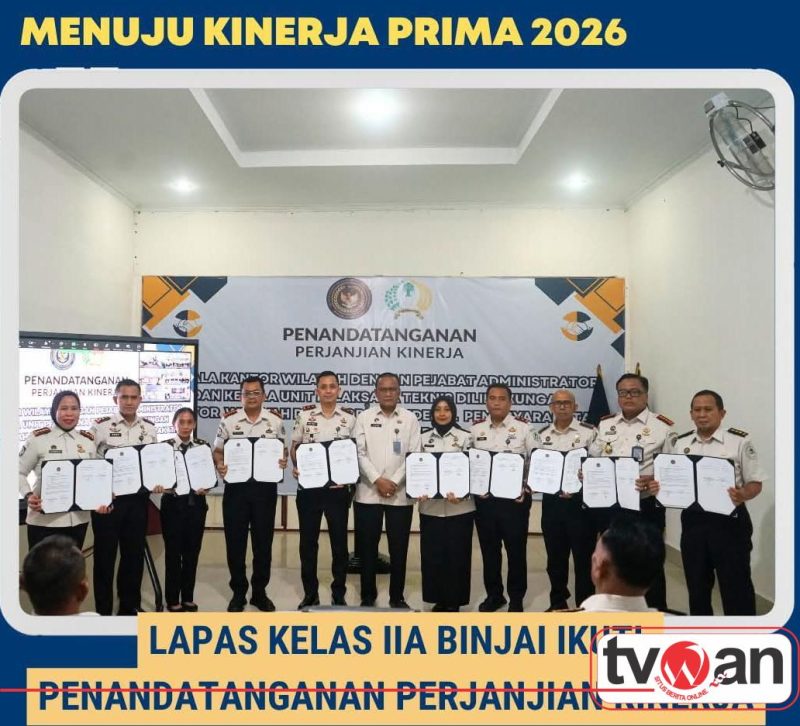TVWAN.ID, BINJAI | – Pemasyarakatan Sumatera Utara, Selasa, (06/01/2026). Kegiatan yang digelar di Aula Kanwil Ditjenpas Sumut tersebut dipimpin langsung Kepala Kanwil Ditjenpas Sumatera Utara, Yudi Suseno, dan dilaksanakan secara hybrid, menggabungkan kehadiran langsung dan partisipasi virtual para Kepala UPT Se-Sumatera Utara.