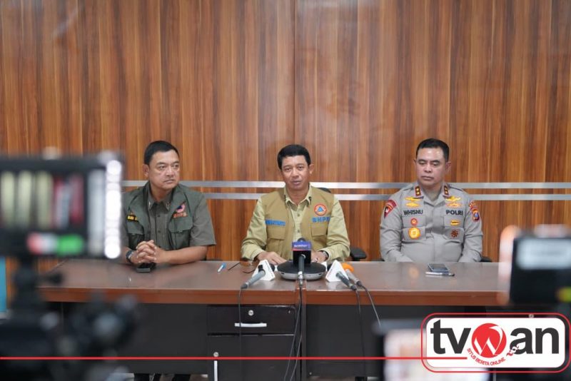 Kepala BNPB Letjen TNI Dr. Suharyanto, S.Sos., M.M., didampingi Deputi Bidang Penanganan Darurat BNPB, Mayjen TNI Budi Irawan, S.I.P., M.SI, dan Kapolda Sumut Irjen Pol Whisnu Hermawan Februanto, S.I.K., M.H., menyampaikan perkembangan terbaru dari Posko Taktis Penanganan Bencana di Tapanuli Utara pada Jumat (28/11).