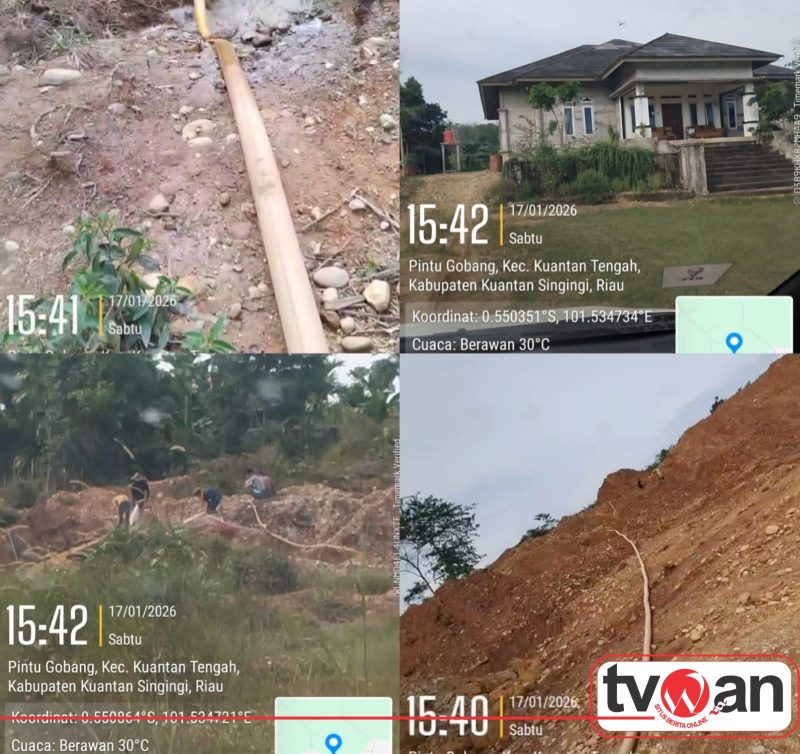 Lokasi pertambangan emas ilegal (PETI) tersebut berada di Jalan Pintu Gobang, Kecamatan Kuantan Tengah, Kabupaten Kuantan Singingi, Riau.