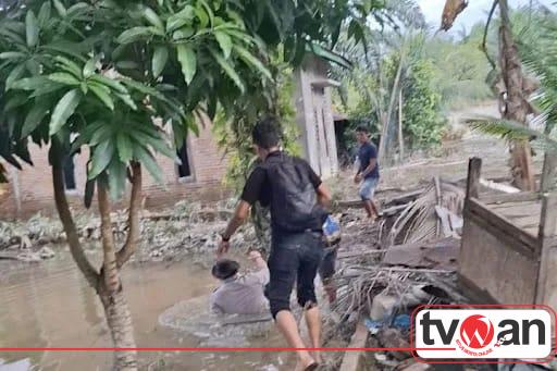 TVWAN.ID, LANGKAT | – Kepedulian Kapolres Langkat AKBP David Triyo Prasojo, S.H., S.I.K., M.Si., dalam aksi kemanusiaan bagi warga terdampak banjir di Dusun Paluh Gusta, Desa Pematang Cengal, kembali mendapat perhatian. Saat memantau sekaligus menyalurkan bantuan sosial, Kapolres sempat tercebur ke dalam genangan air akibat kondisi tanah yang labil di lokasi banjir.