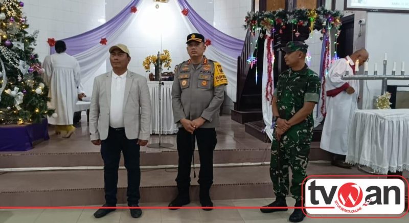 Deli Serdang, tvwan.id – Untuk memastikan situasi keamanan dan ketertiban masyarakat (kamtibmas) tetap kondusif pada malam pergantian tahun, Kapolresta Deli Serdang Kombes Pol Hendria Lesmana, S.I.K., M.Si., Bersama Forkopimda Deli Serdang turun langsung melakukan monitoring dan pengecekan pengamanan kegiatan ibadah akhir tahun 2025 di sejumlah gereja di Wilayah Hukum Polresta Deli Serdang, Rabu (31/12/2025) malam.