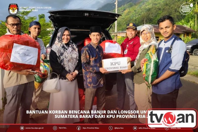 Tvwan.Id | Pekanbaru,- 13 Desember 2025 — Komisi Pemilihan Umum (KPU) Provinsi Riau menyalurkan bantuan kemanusiaan bagi korban bencana najir dan longsor yang melanda Aceh, Sumatera Utara, dan Sumatera Barat pada akhir November 2025. Bencana banjir bandang dan tanah longsor dalam skala masif yang terjadi secara bersamaan di tiga provinsi tersebut menyebabkan banyak korban jiwa, kerusakan yang luas, serta pengungsian dalam skala besar. Dampak bencana ini dirasakan oleh jutaan warga, baik yang kehilangan rumah, fasilitas publik, maupun infrastruktur penting.