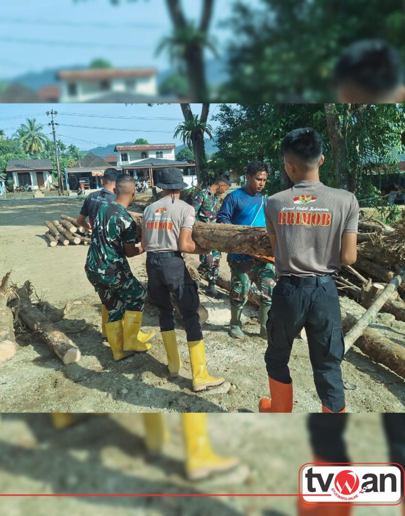 TVWAN.ID, TAPANULI SELATAN | – Upaya pemulihan pascabencana banjir dan tanah longsor di wilayah Kabupaten Tapanuli Selatan terus dilakukan secara terpadu. Personel Satuan Brimob Polda Sumatera Utara yang tergabung dalam Operasi Aman Nusa II bersama personel gabungan TNI–Polri melaksanakan kegiatan pembersihan dan penanganan dampak bencana di sejumlah desa di Kecamatan Batang Toru, Selasa (20/01/2026).