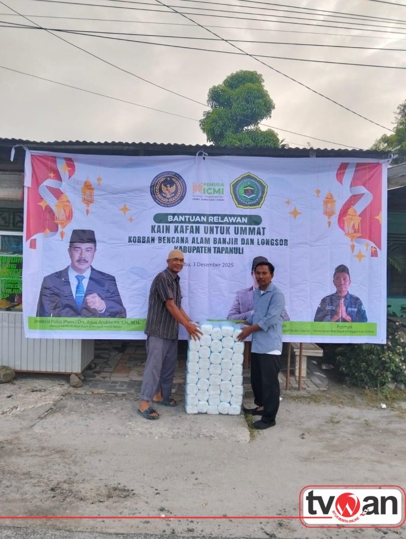 TVWAN.ID, TAPANULI | – Sebagai bentuk keprihatinan dan kepedulian atas bencana tanah longsor yang menimpa kawasan Tapanuli, Paguyuban Bilal Mayit dan Penggali Kubur Sumatra Utara menyalurkan bantuan berupa kain kafan dan perlengkapan lainnya untuk penanganan jenazah korban.