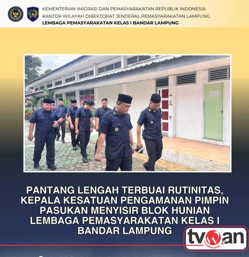 Tvwan.Id | Bandar Lampung,– Kata rutinitas acap kali menjadi celah utama bagi timbulnya kelengahan. Namun, kamus tersebut sama sekali tidak berlaku di Lembaga Pemasyarakatan Kelas I Bandar Lampung. Menolak terjebak dalam ritme pengawasan yang monoton, jajaran Satuan Operasional Kepatuhan Internal kembali menggebrak area blok hunian melalui operasi deteksi dini yang presisi pada Kamis, 12 Maret.