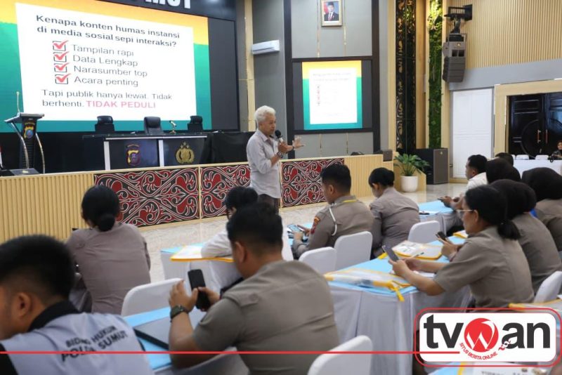 TVWAN.ID, MEDAN | – Bidang Humas Polda Sumatera Utara bersama humas Polres jajaran kembali melanjutkan rangkaian pelatihan peningkatan kapasitas personel humas pada Rabu (11/3/2026) di Aula Tribrata Polda Sumut.
