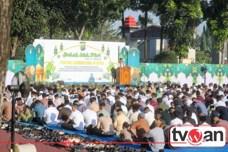 TVWAN.ID, MEDAN | – Kepolisian Daerah Sumatera Utara (Polda Sumut) menggelar Shalat Idul Fitri 1447 Hijriah/2026 Masehi dengan khidmat di lingkungan Mapolda Sumut sebagai momentum memperkuat keimanan, ketakwaan, serta profesionalisme dalam mendukung transformasi Polri yang presisi untuk masyarakat.