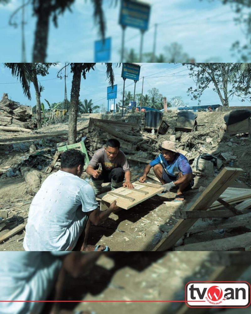 Pembangunan hunian sementara bagi warga terdampak saat ini masih dalam proses, dengan tahapan awal berupa pembuatan mal atau cetakan pondasi yang telah selesai dikerjakan dan akan dilanjutkan pada tahap berikutnya.