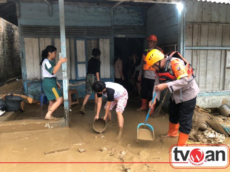 Di Tapanuli Utara, satu SST (25 personel) dipimpin AKP Achmad Fahri membantu pembersihan material longsor dan menyalurkan bantuan air bersih kepada warga sekitar Polres Taput.