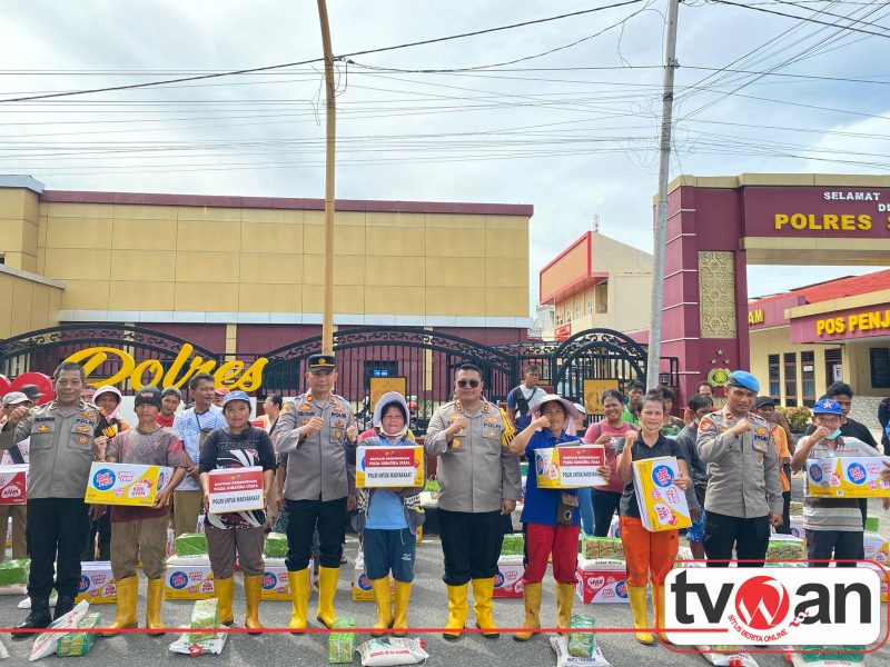TVWAN.ID, SIBOLGA | – Polres Sibolga melaksanakan pendistribusian Bantuan Sosial (Bansos) kepada masyarakat yang terdampak bencana alam banjir dan tanah longsor di wilayah Kota Sibolga. Kegiatan ini merupakan bentuk kepedulian Kepolisian Republik Indonesia, khususnya atas arahan Bapak Kapolri Jenderal Polisi Drs. Listyo Sigit Prabowo, M.Si., dan Ibu Ketua Umum Bhayangkari Ny. Juliati Sigit Prabowo, serta dukungan dari Bapak Kapolda Sumut Irjen Pol. Whisnu Hermawan Februanto, S.I.K., M.H., dan Ibu Ketua Bhayangkari Daerah Sumut Ny. Mona Whisnu.