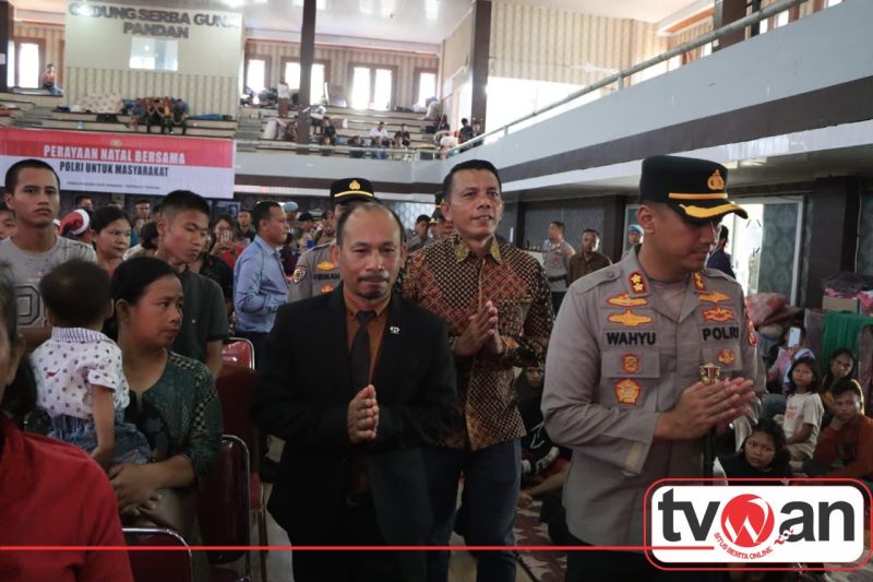 Tapteng, tvwan.id – Polres Tapanuli Tengah kembali menunjukkan kepedulian dan kehadirannya di tengah masyarakat terdampak bencana alam dengan memfasilitasi Perayaan Natal bersama para pengungsi di Posko Pengungsian Simpang Sipange, Hutanabolon, Kelurahan Tukka, Kecamatan Tukka, Kabupaten Tapanuli Tengah, Kamis (25/12/2025) pagi.