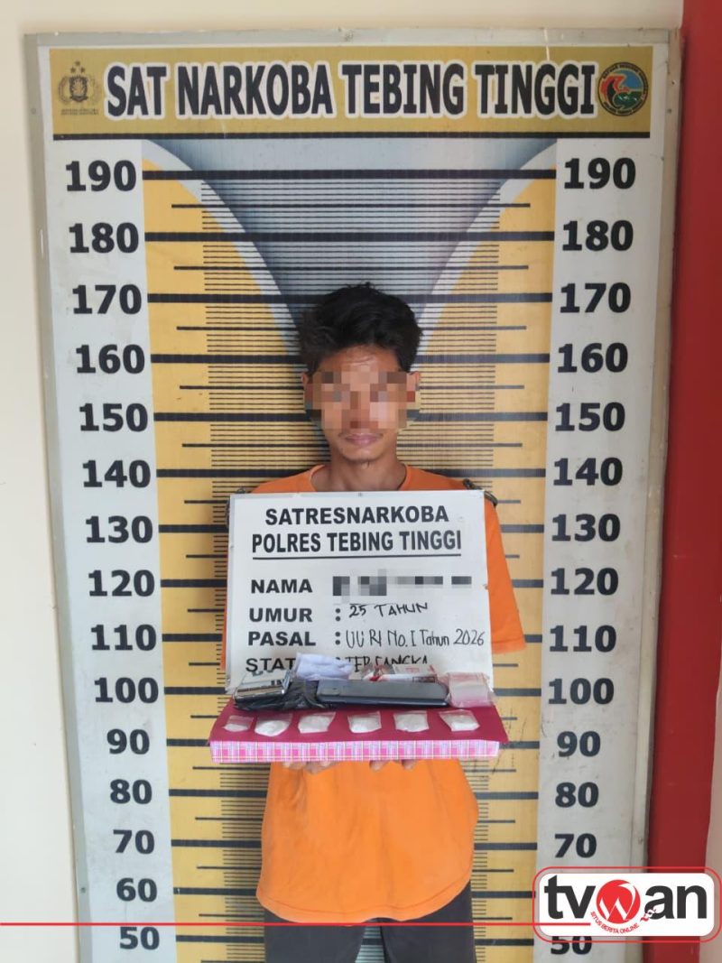 TVWAN.ID, TEBING TINGGI | – Sat Resnarkoba Polres Tebing Tinggi berhasil menggagalkan transaksi narkotika jenis sabu. Seorang pemuda berinisial MJS (25) diamankan bersama barang bukti sabu dengan total berat 25,07 gram.