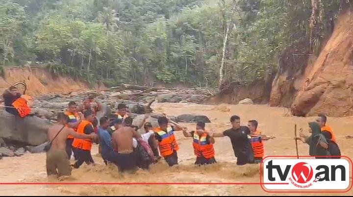 TVWAN.ID, TAPANULI TENGAH | – Hujan deras yang mengguyur wilayah Kabupaten Tapanuli Tengah pada Jumat, 2 Januari 2026, menyebabkan debit air sungai meningkat dan meluap hingga memutus akses jalan dari Kelurahan Sait Kalangan II Desa Huraba menuju Kelurahan Hutanabolon, Kecamatan Tukka.