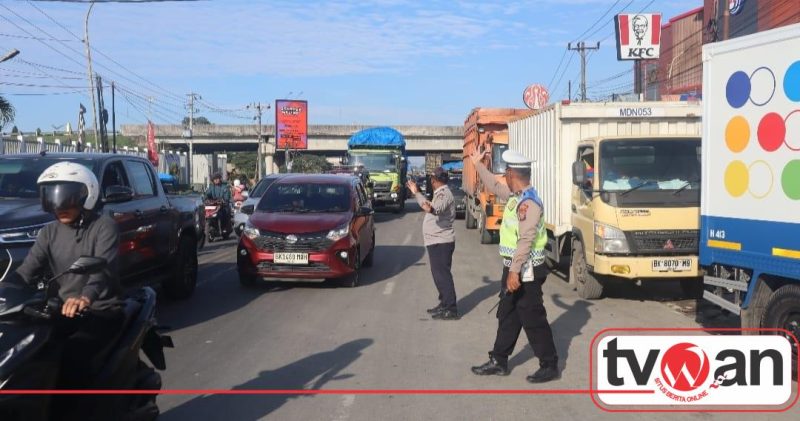Sat Lantas Polresta Deli Serdang Pantau Kemacetan Antrean SPBU