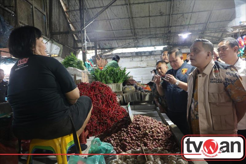TVWAN.ID, MEDAN – Tim Satgas Pangan Polri bersama jajaran Pemerintah Provinsi Sumatera Utara dan Perum Bulog melakukan pengecekan langsung harga dan ketersediaan bahan pokok penting (bapokting) di Pasar Simpang Limun, Kota Medan, Jumat (13/2/2026).