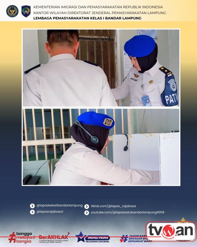 Tvwan.Id | Bandar Lampung,– Mengawali pekan di bulan suci Ramadhan, jajaran Lembaga Pemasyarakatan (Lapas) Kelas I Bandar Lampung terus mengintensifkan upaya menjaga stabilitas dan ketertiban. Pada Senin (23/02), Tim Satuan Operasional Kepatuhan Internal (Satopspatnal) yang dipimpin langsung oleh Ketua Tim, Dat Menda, bergerak melakukan kegiatan Deteksi Dini dengan menyisir area blok hunian secara menyeluruh.