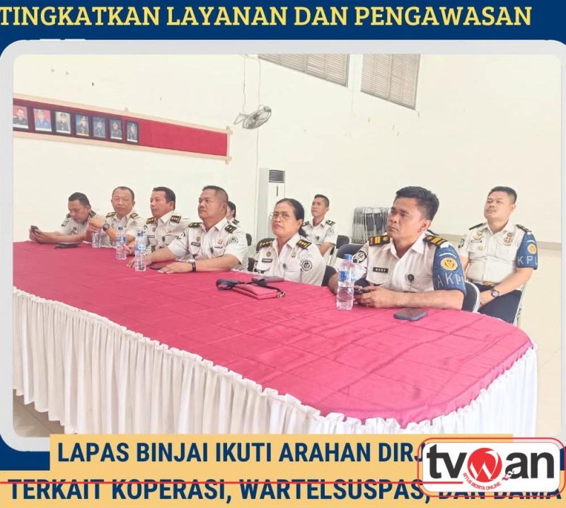 TVWAN.ID, BINJAI | – jajaran Lembaga Pemasyarakatan (Lapas) Kelas IIA Binjai mengikuti Rapat Pengarahan dari Direktur Jenderal Pemasyarakatan terkait pengelolaan Koperasi Pemasyarakatan Indonesia, Wartelsuspas, serta penyediaan bahan makanan (BAMA) pada Lapas dan Rutan, Senin (06/04/2026).