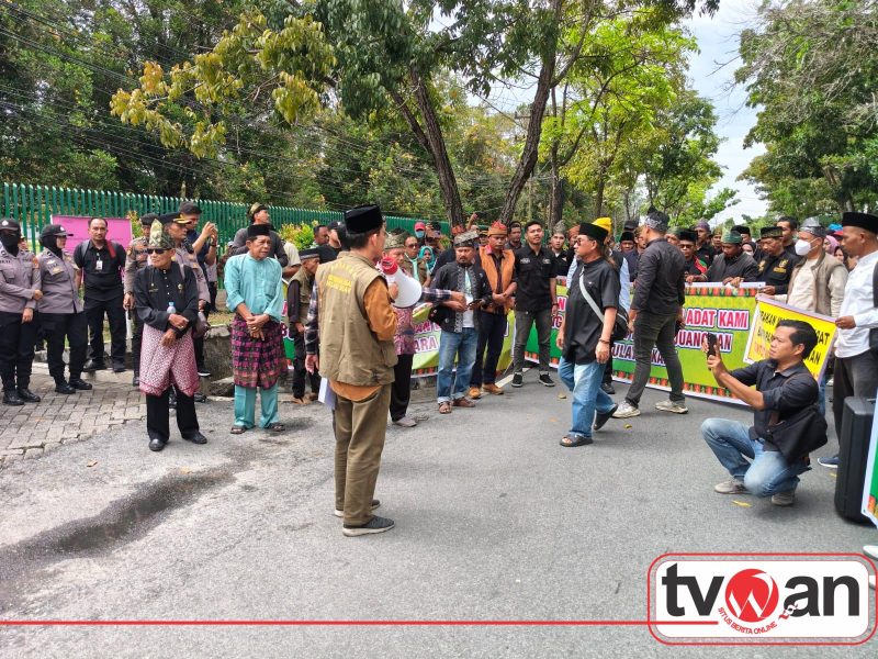 Tvwan.Id | Pekanbaru,— Ratusan massa telah berkumpul sejak pagi hari di depan Kantor Agrinas Provinsi Riau yang berlokasi di Jalan OKM Jamil (belakang MTQ), Selasa (7/4/2026). Mereka terdiri dari mahasiswa, tokoh adat, serta berbagai simpul Kemelayuan yang datang untuk menyuarakan tuntutan keadilan agraria.