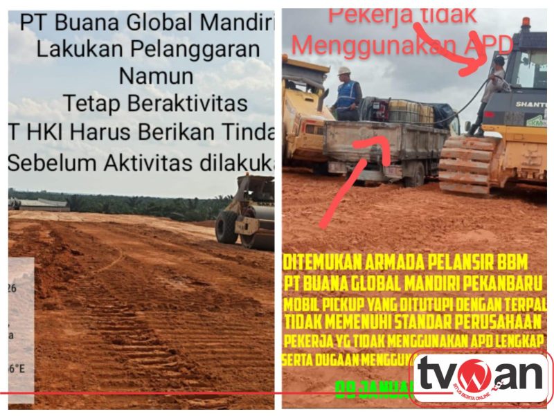 Jumat 09 Januari 2026 tim dari Media melakukan investigasi dilapangan menemukan Armada PT Buana Global Mandiri Pekanbaru tidak memenuhi standar perusahaan dalam pengisian BBM alat berat aktivitas perusahaan. Dan para pekerja PT Buana Global Mandiri yang diduga sengaja tidak menggunakan APD lengkap serta dugaan Penggunaan BBM bersubsidi untuk armada perusahaan.